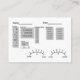 N'oubliez jamais votre carte de mèche de clients ! Employez cette carte pour enregistrer vos dispositions de mèche de clients.