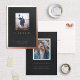 Cette faire-part moderne et classique de graduation comporte une seule photo conçue pour avoir l'impression d'être exposée dans une galerie d'art avec une grande bordure en or rose en papier gras autour du bord de la carte et le nom et l'école du diplômé près du bas de la carte. L'arrière - plan noir crée une toile de fond sophistiquée pour la photo du diplômé. Le dos vient compléter l'avant par une photo supplémentaire dans un cadre noir épais et un endroit pour plus de détails.