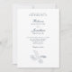 L'élégante carte d'invitation de mariage présente un design typographique élégant avec une illustration minimaliste de la ligne de feuilles tropicales dans une couleur bleu marine. Le thème des couleurs se retrouve sur le dos de la carte avec l'image de la feuille tropicale en blanc. Ce papier à lettres mariage est prêt pour vous à customiser avec les détails de votre journée spéciale. Fait partie d'une collection en pleine croissance.
