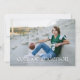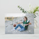 Simple carte de faire-part moderne de graduation avec grand nom superposé sur une photo sur le devant et collage photo multiple sur le dos.
