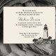 Une carte de faire-part funéraire exquise avec un motif de phare sur un fond serein. Célébrant les souvenirs des jours côtiers, il saisit une vie pleine d'aventure.