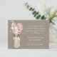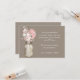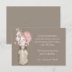 Carte de faveur de mariage parfaite pour un mariage de style campagnard ou peut-être que vous aimez simplement les pots Mason ! Pot Mason suspendu à un crochet rempli de fleurs sauvages champêtres. Un fond brun chaud contraste avec le pot Mason suspendu et les couleurs de fleurs sauvages roses et blanches. Si vous avez des questions sur ce design ou si vous souhaitez une modification de couleur, veuillez m'envoyer un courriel à paula@labellarue.com