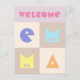 Carte de félicitations pour un nouveau-né et ses parents avec un prénom de bébé fille de 4 lettres dans des couleurs pastel neutres rose clair lilas beige. Les 4 lettres sont personnalisables selon le prénom de l'enfant. Les lettres sont choisies dans une police mignonne pour un rendu enfantin et figuratif.