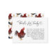Carte de demande de baby shower à thème agricole mignonne avec l'aquarelle illustrant un coq rouge. La carte demande aux clients d'apporter un livre pour enfants neuf ou d'occasion au lieu d'une carte.