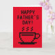Carte rouge de fête des pères avec tasse à café en pixel art. Conception graphique informatique pixelisée pour papa, père, grand-père, etc. Carte de vœux personnalisée pour lui. Faites-la expédier directement à votre papa.