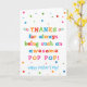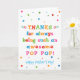 Tu appelles ton grand-père Pop Pop, pas grand-père. Imaginez à quel point Pop Pop sera excité de recevoir une carte de Fête des pères qui lui sera adressée spécialement ! Votre pop pop aussi va adorer le design brillant et coloré de cette carte de Fête des pères qui dit "Merci d'être toujours une pop pop si géniale! Bonne Fête des pères !" Rendre cette carte personnalisable ! Cliquez sur "Edit Design", "Inside Bottom/Right : Text & Images", "Text" et "Add text" pour écrire votre propre message personnalisé à Pop Pop Pop à l'intérieur !