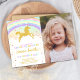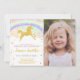 Ajoutez une touche de magie et d’étincelle à l’anniversaire de votre enfant avec cette invitation à la licorne arc-en-ciel en parties scintillant d’or avec leur photo ! Avec un design original et chatoyant de licorne arc-en-ciel, cette invitation est parfaite pour des fêtes de licorne magiques, des anniversaires de contes de fées et des célébrations enchantées. Entièrement modifiable - customisez facilement le nom, l'âge et les détails du parti.