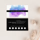 Les cartes de visite d'aquarelle chic arborent votre nom ou nom de société sur une illustration de l'encre blooming dans des tons lumineux et colorés de bleu indigo et violet. Ajoutez vos coordonnées complètes à l'arrière en blanc sur noir croustillant. Inclut votre offre de fidélité personnalisée (présentée avec "profitez de 20% de rabais sur n'importe quel service après cinq visites"), et six punchouts.