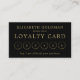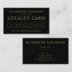Ces le résumé, les cercles affligés de style en or de faux (aucune feuille d'or n'est utilisée réellement) sur un arrière - plan noir orne l'avant de ce carte de visite élégant et moderne de fidélité.