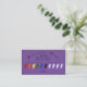Il s'agit d'une carte de promotion de fidélité d'entreprise violette avec 10 fées sur le devant qui peut être estampillée et utilisée pour une promotion de fidélité. Personnalisez cette carte avec votre nom d'entreprise, adresse, ville, état, zip, numéro de téléphone et e-mail. Le mot loyalty peut être supprimé, modifié ou laissé tel quel. Le dos de la carte a une fée unique avec le mot "notes" qui peut aussi être modifié ou laissé tel quel.