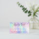 Un arrière - plan holographique, rose et violet. Sur le devant : Ajoutez-vous la remise. Retour : Personnalisez et ajoutez votre nom, titre, numéro de téléphone, courrier, adresse de site, logo commercial, code qr à votre site Web ou compte de médias sociaux.