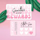 Salon de beauté moderne ou carte de fidélité spa avec polices rétro et arrière - plan rose. Le design rétro des polices de caractères "rewards" et "vip club", ce design de carte punch est parfait pour votre studio de maquillage, salon de fouilles, spa de clous ou toute autre entreprise. Vous pouvez customiser cette carte de récompenses d'affaires avec votre offre promotionnelle ainsi que votre logo et les détails de votre entreprise. Cette carte de récompenses esthétiques roses comprend 6 fentes en forme de coeur ou vous pouvez ajouter plus que nécessaire. La meilleure façon de récompenser les clients fidèles qui continuent à revenir pour plus !