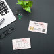 Un faux marbre rose qui a l'air d'arrière - plan, du texte noir. Sur le devant : Ajoutez-vous la remise. Retour : Personnalisez et ajoutez votre nom, titre, numéro de téléphone, courrier, adresse de site, logo commercial, code qr à votre site Web ou compte de médias sociaux.