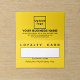 Carte de fidélité personnalisée à deux volets avec espace pour le nom de vos clients fidèles. La couleur est jaune. La couleur de la police est noire. Pour customiser cette carte de fidélité, téléchargez votre logo d'entreprise, tapez votre nom d'entreprise ou d'entreprise, votre adresse, votre numéro de téléphone, votre adresse e-mail, votre site Web ou votre page de médias sociaux et la date de validité de cette carte de fidélité. Veuillez vérifier l'apparence après avoir téléchargé le logo et tapé des textes. Si l'apparence vous plaît, vous pouvez passer votre commande maintenant. Si vous avez besoin de redimensionner et déplacer le logo et les textes pour s'adapter à cette carte de fidélité ou à d'autres styles que vous choisirez, veuillez modifier l'outil de conception. Vous pouvez également effectuer d'autres modifications en fonction de vos préférences dans l'outil de conception, par exemple modifier la couleur de la carte, la couleur de la police, le style de police, ajouter une image, éditer des textes, ajouter des textes et supprimer des textes. Carte de fidélité pour vos clients afin de les convaincre de racheter dans votre magasin ou de revenir dans votre magasin pour profiter de votre service.
