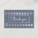 Carte de fidélité empreinte de patte bleu et argent, 2 lots de 10 empreintes de pattes à timbrer ou à clip, le 10ème étant plus grand. L'inverse offre une place pour les détails de réduction de fidélité et les détails de l'entreprise, le haut et le bas ont été coupés en couleur, donc si vous choisissez de couper la carte, il ne clipsera aucun détail important. Cette carte de fidélité convient à merveille, marcheurs de chiens, gardiens de chiens, garderies de chiens ou salons d'animaux.