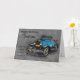 Une voiture bleue vintage, un croquis et une peinture lâche avec une aquarelle effectuent l'arrière - plan. Grand pour l'anniversaire masculin et avec des mots gentils sur l'avant, pour ce jour spécial
