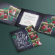 Ajoutez un total de huit photos à ce design carte photo de vacances festif et rustique dans un agencement triplé unique orné de sprigs sacrés rouges et verts sur un arrière - plan en damier. Front tient trois photos carrés avec "ont un saint Noël joyeux" en typographie manuscrite. Personnalisez l'intérieur avec un message préimprimé personnalisé ou une lettre de mise à jour "année de révision".