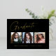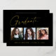 Cartes de papier doré "3 Photo" de graduation, propres, tendance, modernes et élégantes (votre choix d'or argenté ou de papier rose), avec éléments design de texte moderne avec un script d'encre calligraphie unique. Les photos du diplômé sont accentuées d'une finition partielle délicate et minimaliste. Le dos de la carte offre des espaces de texte personnalisés pour des informations sur votre diplôme ou peut être effacé si vous souhaitez écrire un message à la main. Noir avec feuille d'or ou customiser facilement l'arrière - plan pour correspondre à la couleur primaire de votre école ou à n'importe quelle couleur de votre choix. Parfait pour les étudiants de deuxième cycle du secondaire, du collège et de l'université.