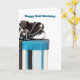 Arc de Fondant sur gâteau-cadeau brun et aqua rayé pour un demi-anniversaire. La couleur Arrière - plan peut être modifiée.