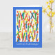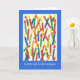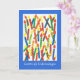 Carte d'anniversaire aux couleurs vives avec bougies et "Joyeux anniversaire" en suédois, d'un collage de papier peint à la main par Judy Adamson. L'intérieur est laissé vide pour votre propre message.