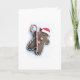 Holiday card with a picture of a gingerbread man holding a candy cane.
