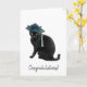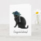 Un chat noir porte un mortier sur cette carte de félicitations pour la remise des diplômes.