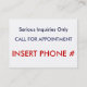 Carte de visite, taille : États-Unis : 8,9 cm x 5,1 cm, papier : Signature Matte, coins : Arrondis