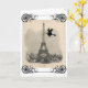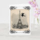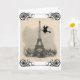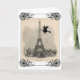 Une sorcière vole à travers le ciel de Paris avec Tour Eiffel à cette grande carte de voeux ou invitation de Halloween comportant une carte postale française vintage merveilleuse et un grand scrolly cadre de toile d'araignée. L'intérieur a une petite sorcière de vol du côté gauche et souhaite un Halloween heureux en français. Les "fêtes de Bonnes d'Halloween." (Ou substituez vos propres détails de message ou de partie.) Merci à Karen aux graphiques féeriques des images.