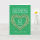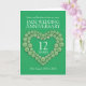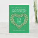 Carte personnalisée pour le 12ème anniversaire de mariage de jade vert. Personnalisez cette carte d'anniversaire avec votre date et vos années de mariage ainsi que les mots à l'intérieur. L'exemple indique : Sœur et beau-frère pour votre anniversaire de mariage de jade 12 ans 25 août 2012 à 2024. Graphisme et conception de perles de jade en forme de cœur par Sarah Trett pour www.mylittleeden.com