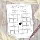 Bridal Bingo Shower Black and White Game Card. Disponible numériquement ou imprimé. Bridal Bingo est dans un script élégant avec des motifs d'anneau et de coeur et le reste du texte que vous pouvez facilement personnaliser. Vous pouvez également modifier les couleurs du texte et de l'arrière - plan de chaque côté si vous le souhaitez via l'option Customiser plus.