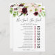 La carte de jeu pour la douche à nuptiale florale chic est assortie à notre collection de douche à nuptiale Blush Romance et possède une bordure supérieure de fleurs d'aquarelle rose et bordeaux avec un feuillage botanique vert luxuriant. Carte double face vous permet d'obtenir deux jeux en un! Caractéristiques avant He Said, She Said et revient à un mot mariage thème scramble. Personnalisez avec la mariée le nom et la date de la douche. Pour une personnalisation supplémentaire, n'hésitez pas à me contacter !