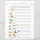 Cette carte de jeu double face dispose de deux versions différentes de pictionary émoji sur l'avant et l'arrière, et est parfait pour un baby shower ou un bébé sprinkle. Ce jeu de pictionnaire émoticônes est doté d'un soleil en terre cuite. Parfait pour une célébration sans distinction de genre. Vos invités peuvent résoudre ces phrases communes de grossesse et de bébé en décodant les émoticônes. CLÉ DE RÉPONSE : 1. Baby shower 2. Jumeaux 3. Triplés 4. Maman doit avoir 5 ans. Brise d'eau 6. Sac pour bébé de l'hôpital 7. Date d'échéance 8. Bouteille bébé 9. Voyage à l'hôpital 10. Couper la corde 11. Pâte au four 12. Pas d'alcool 13. Fille ou garçon ? 14. Faire-part de grossesse 15. Nourriture pour bébés 16. Brûlure cardiaque 17. Maladie du matin 18. Baisers à papillon 19. Baby Moon 20. Cravages de grossesse. Vos invités peuvent résoudre les noms des livres pour enfants et des comptines en décodant les émoticônes. CLÉ DE RÉPONSE : 1. Cinq Petits Singes Qui Sautillent Sur Le Lit 2. Twinkle Twinkle Little Star 3. Itsy Bitsy Spider 4. Poisson arc-en-ciel 5. La Caterpillar Très Affamé 6. Le Lion, La Sorcière & L'Armoire 7. Hickory Dickory Dock 8. J'espionne 9. Oeufs verts et jambon 10. Winnie L'Ourson 11. Charlotte's Web 12. Alice au pays des merveilles 13. Si Vous Donnez Un Cookie À Une Souris 14. Hey Diddle Diddle 15. Il y avait une Vieille Femme 16. Un Poisson, Deux Poissons, Poisson Rouge, Poisson Bleu 17. Où Les Choses Sauvages Sont 18. Goldilocks et les trois ours 19. Les Trois Petits Cochons 20. Le vieux MacDonald avait une ferme. Vous pouvez personnaliser cette conception en cliquant sur "Personnaliser ce modèle" ou si vous souhaitez modifier la police, les couleurs ou organiser les éléments de conception d'une manière différente, vous pouvez cliquer sur "Modifier à l'aide de l'outil de conception".