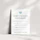 Laissez les invités du baby shower faire leur meilleur devis à la date et à l'heure de naissance du bébé garçon, le poids et la longueur! Placez une cheminée à l'entrée de l'événement, passez-les ou laissez-en une à chaque endroit. Fait une tenue de conservation amusante pour la future maman aussi, lorsqu'il est compilé dans une jolie boîte ou un classeur. Le design se compose d'un coeur bleu pâle au sommet avec du lettrage noir moderne et d'un motif à rayures bleu et blanc au verso.
