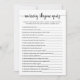 Carte de jeu de Baby shower de la Nursery Rhyme
