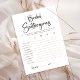 Appréciez votre douche nuptiale moderne avec notre carte de jeu minimaliste "Scattergories", ajoutant une touche de plaisir à la célébration. Ce jeu classique à thème noir et blanc encourage le rire et la créativité, car les invités brainstorstorm mots dans des catégories spécifiques, parfait pour un dernier séjour avant le ring. Garanti d'être un succès, ce jeu ajoute une excitation supplémentaire à vos festivités de douche nuptiale.