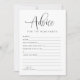 Cette nouvelle carte de conseil et de voeux dispose d'une police manuscrite pointue et d'un design moderne minimaliste avec une combinaison de couleur noir et blanc foncé. Ce design minimaliste est parfait pour votre douche nuptiale moderne ou classique, douche à couple ou événement mariage. Modifiez facilement toutes les couleurs pour répondre aux besoins de votre événement.
