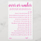 Carte de jeu rose vif Simple Over ou Under