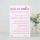 Simple "Over ou Under ?" jeu de quiz pour baby shower ou révélation de sexe avec un script manuscrit amusant et décontracté. Le design classique comprend une typographie de citation manuscrite moderne en surimpression. Pour d'autres couleurs ou produits assortis, veuillez visiter la boutique JustFharryn Zazzle, ou contacter le concepteur, c/o Fharryn@yahoo.com Tous droits réservés. #bohochic #zazzlemade