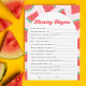 Ajoutez du plaisir à votre fête avec cette carte de jeu de rime de Baby shower de Watermelon personnalisée ! Idéal pour les idées de baby shower de pastèque et un ajout sucré à votre thème de baby shower de pastèque. Idéal pour les idées de baby showers d'été, surtout pour les filles, cette carte de jeu apporte du charme à tout baby shower d'été. Un must pour les idées de baby shower de pastèque fille et des thèmes de baby shower d'été tendance.