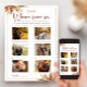 La carte de jeu Where Were We automne herbe de la pampa offre une touche unique. Son design à l'aquarelle rustique présente quelques photos au milieu de la pampa sèche, parfait pour les enterrements de vie de jeune fille ou les fêtes prénuptiales sur le thème bohème. Les invités peuvent s'amuser à deviner les lieux des événements mémorables représentés sur la carte, ajoutant un élément amusant et interactif à la célébration d'automne.