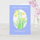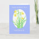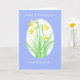 Une jolie carte de voeux pour la Saint David's Day, 'From Two of Us', avec un bouquet de jonquilles en bordure bleu clair, d'une aquarelle de Judy Adamson.