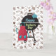 Fêtez la grandeur grillade de papa avec cette carte de fête du Père amusante et festive! Une grillade noire audacieuse se trouve devant et au centre, entourée d'un motif ludique de viandes, pizzas, tasses à bière et hot dogs. Doté d'un tablier rouge et d'une mitaine au four bleu, cette carte est vide à l'intérieur, parfait pour votre message personnel au jardin BBQ king.