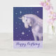 Jolie licorne avec un ciel bleu étoilé sur cette carte d'anniversaire.
