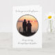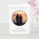 Une carte spéciale d'anniversaire de mariage destinée aux couples expérimentés, avec un coucher de soleil au bord de l'océan et les silhouettes d'un couple qui en profite ensemble, côte à côte, accompagnée des mots "Vous savez que vous avez épousé la bonne personne... quand vous profitez encore des choses simples de la vie ensemble." Photographie gracieuseté de Heidi Turner.