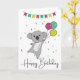Carte d'anniversaire Joyeux Anniversaire avec des ballons et un koala pour l'anniversaire des enfants. Une carte amusante et colorée pour l'anniversaire d'un enfant. Pour les amis qui aiment les koalas.