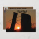 Une photo d'un coucher de soleil de la ligne de clôture du Kansas avec un barbelé et un poteau de porte. Avec un coucher de soleil lumineux et coloré dans le fond. C'est sur une CARTE POST.