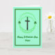 Carte de la Saint Patrick pour votre prêtre, en vert, avec une croix et des étoiles d'or autour de la croix.