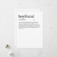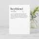 Ajoutez un peu d'humour et de style à votre cadeau de la Saint-Valentin avec cette carte amusante "Définition du Petit Ami". Avec une typographie minimaliste et spirituelle ainsi qu'un design épuré, elle délivre un message amusant et léger qui fera certainement sourire votre moitié. Il y a également un espace vierge où vous pouvez inclure votre message manuscrit personnalisé pour lui. Vous souhaitez une caractéristique spirituelle et personnalisée ajoutée à la définition ? Contactez-moi à : shahirah.creates92@gmail.com, et je la rendrai unique pour vous.