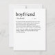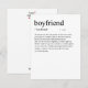 Ajoutez une touche d'humour et de style à votre cadeau de la Saint-Valentin avec cette carte amusante "Définition du petit ami". Avec une typographie spirituelle et minimaliste et un design épuré, elle délivre un message amusant et léger qui fera certainement sourire votre moitié. Il y a également un espace vierge où vous pouvez inclure votre message manuscrit personnalisé pour lui. Vous souhaitez une caractéristique spirituelle et personnalisée ajoutée à la définition ? Contactez-moi à : shahirah.creates92@gmail.com, et je la rendrai unique pour vous.