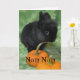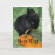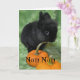Cette carte comporte un petit lapin mignon avec son citrouille de Halloween.